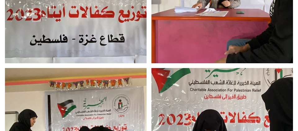الهيئة الخيرية تواصل مشروع توزيع كفالات الأيتام في قطاع غزة.